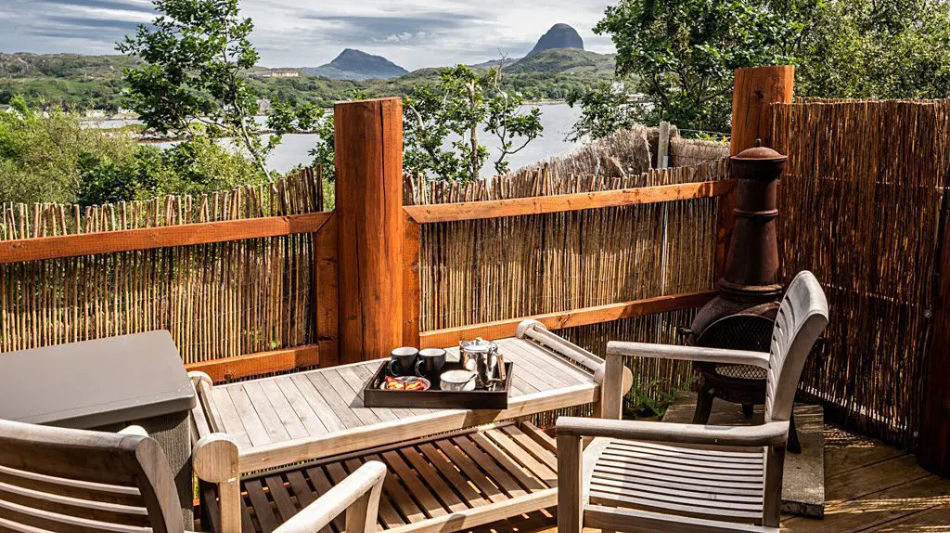 The Hideaway is a luxurious cabin offering breathtaking views of Lochinver Bay and the Assynt Range. Perfect for a romantic getaway, it features a private hot tub and a spacious balcony for enjoying the stunning scenery. Inside, the modern amenities and cozy furnishings create a welcoming atmosphere, ideal for unwinding and connecting with nature.