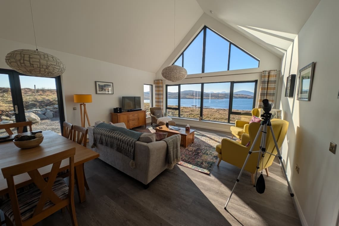 Our aim was to make use of the wonderful views across Loch Barraglom to the Uig Hills and Atlantic Ocean beyond. When we sit in the lounge and enjoy the sun setting and dropping behind the hills we feel we achieved what we set out to do.