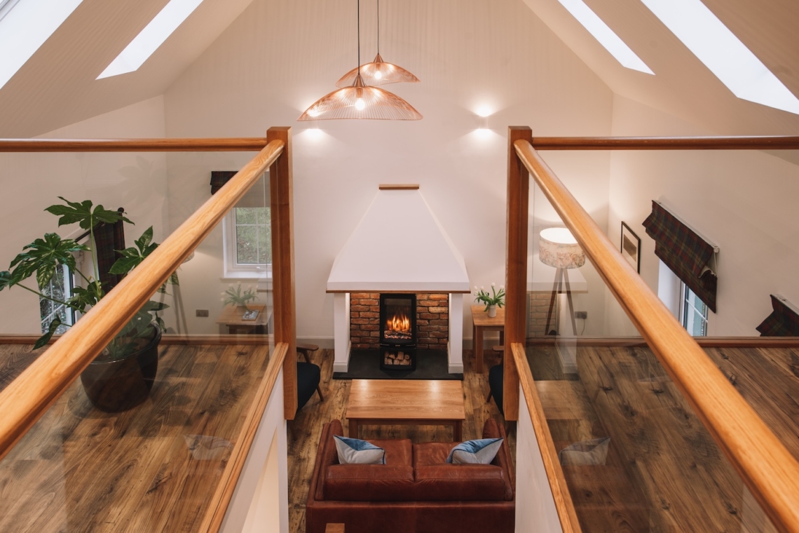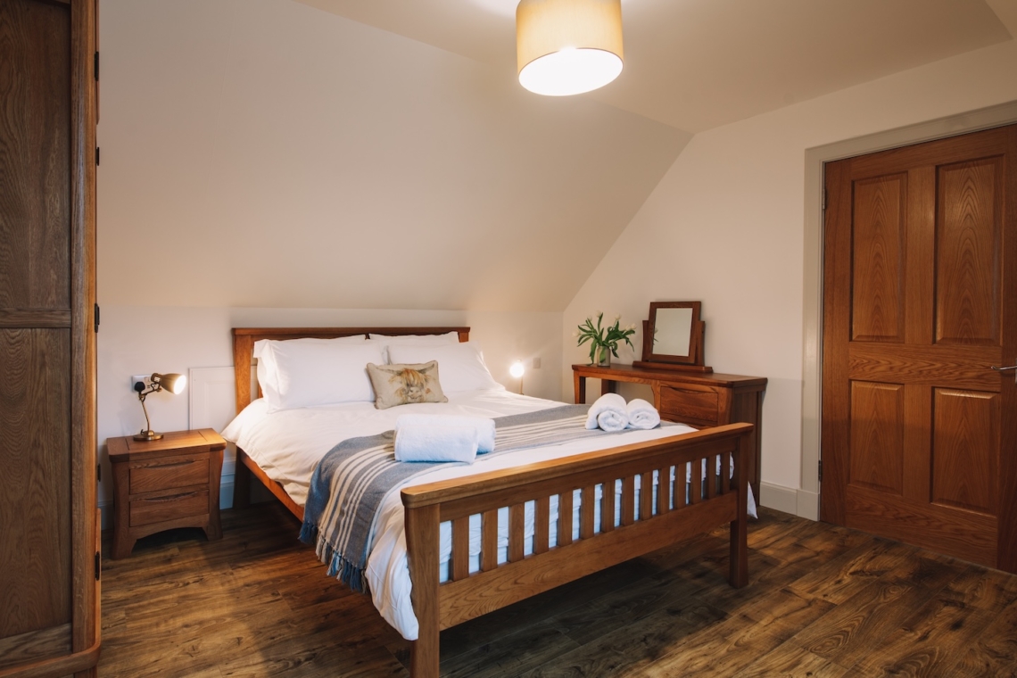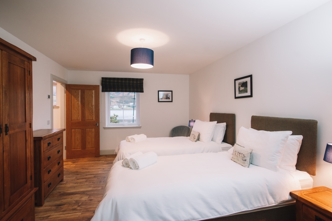 As you ascend the bespoke oak staircase, you’ll find the desk/working station with stunning views over the picturesque loch and to the hills behind. There’s high-speed broadband if you need to work or just catch up with e-mails. The desk provides an area for planning routes for the next day and making the most of your stay in the area.