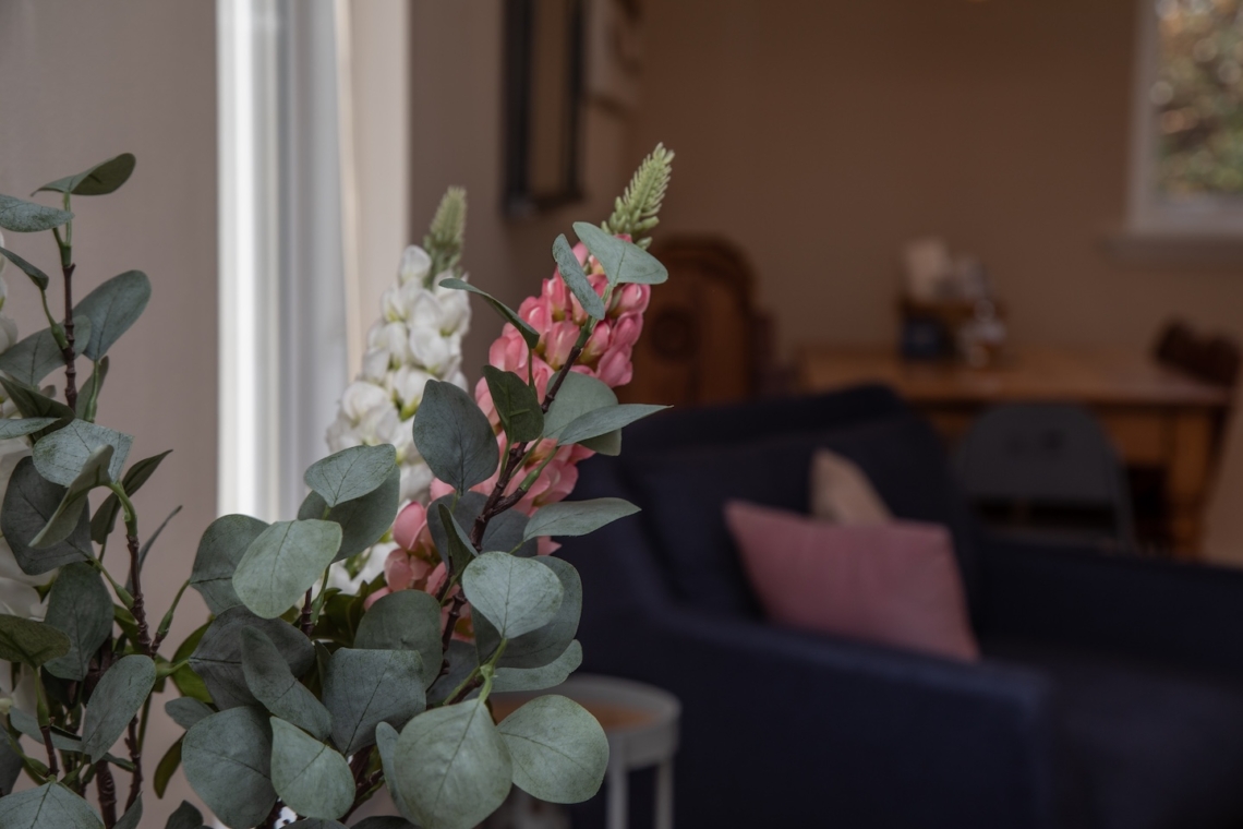 Upstairs, two tranquil bedrooms offer restful views across the hills, while a modern bathroom provides both a bath and shower to suit all preferences. Outside, enjoy a fully enclosed garden, BBQ facilities, and a covered patio ideal for morning coffee or al fresco dinners with a mountain backdrop.