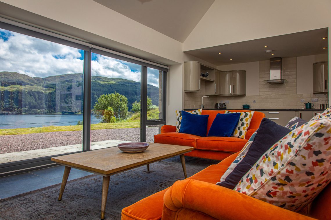 Jaw-dropping loch views and total tranquillity in this uber modern Scottish stone built retreat for 4, on the beautiful banks of Loch Alsh, Ross shire.