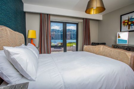 All rooms are easily accessed on the ground floor. The Lodge has one double bedroom and one en-suite superking or twin room as well as a large room comprising of a spacious shower and freestanding bath for long luxurious soaks. The house also has a utility room and each room enjoys a glass door that opens onto a Patio area just waiting to immerse you in amazing views, scenery and local wildlife.