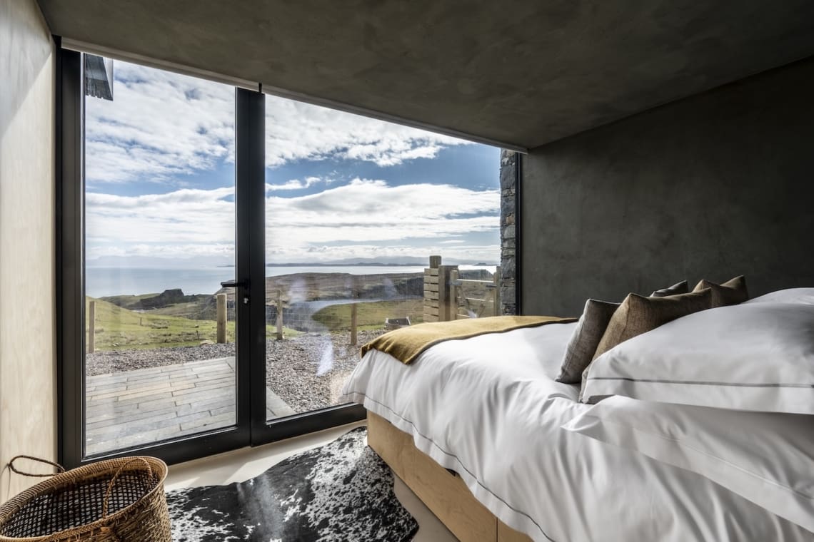 Wake up in a king-sized bed to breathtaking views through expansive windows. Open the electric blinds and let the beauty of Skye unfold right before your eyes.