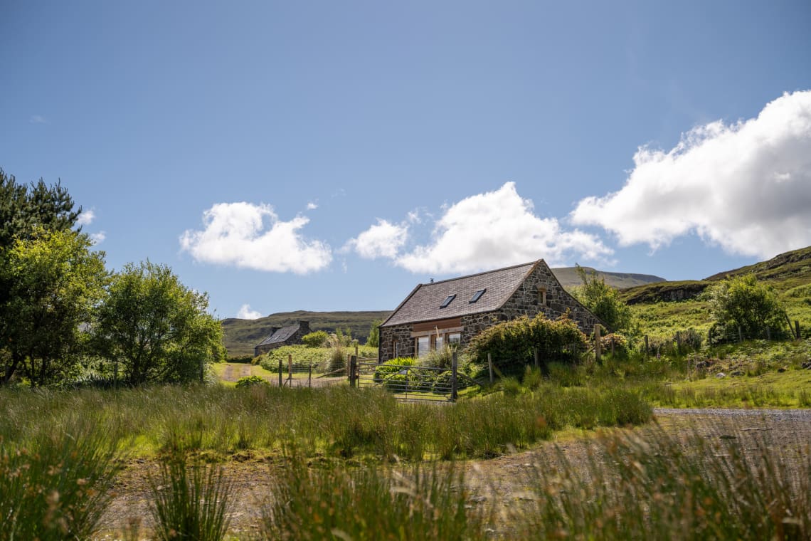 The cottages are located on the Isle of Skye’s North West peninsula, called Duirinish. The wilderness of the Macleod’s Tables provides a majestic backdrop and offers plenty of great walks straight from your doorstep. Although only 3 miles from Dunvegan with local shops and good places to eat, your location offers real privacy and you still get to enjoy that remote island feel with wide open spaces to explore. Access to Skye’s famous attractions – Neist Point, Coral Beach, and Dunvegan Castle are all nearby as are some of Skye’s best restaurants including The Three Chimneys, Edinbane Lodge and Loch Bay.