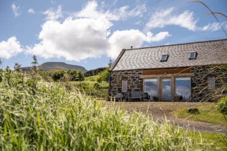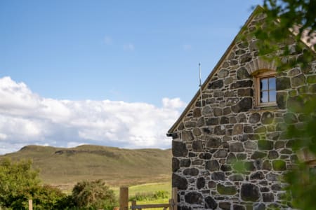 A boutique hideaway sitting beneath Macleod’s Tables, two flat-topped mountains that dominate the landscape of North West Skye – luxury, peace and seclusion await you in this 1870’s converted barn with sheepskins, luxury touches and expansive views.