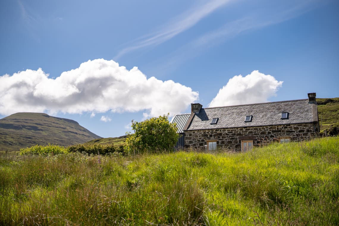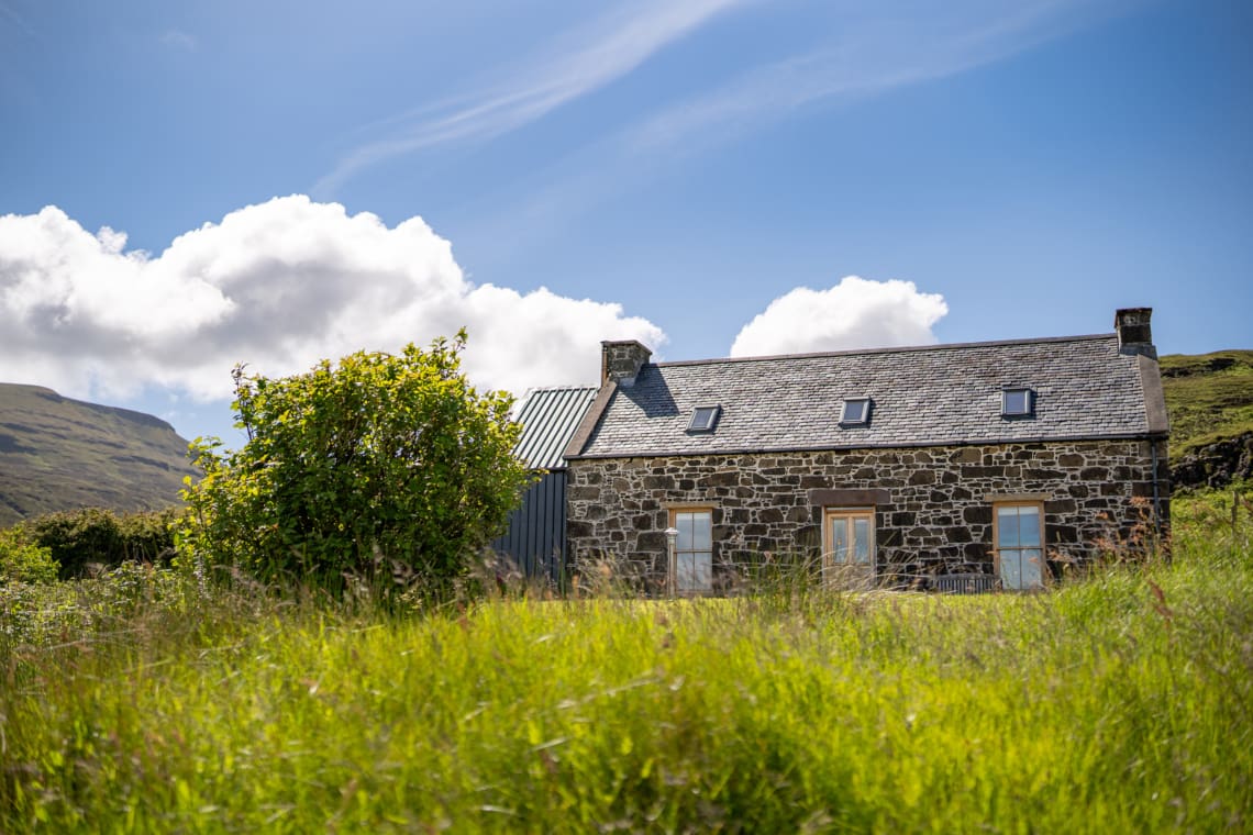 Escape to this gorgeous stone-built, mid-19th-century Skye Farmhouse brimming with character and charm with window seats, wood burner and to die for views – nestled within the dramatic landscape of Macleod’s Tables, two flat-topped mountains that dominate the landscape of North West Skye.