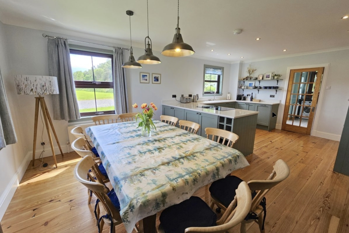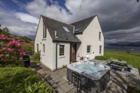 This spacious farmhouse can accommodate 10 guests in five bedrooms, one of which is on the ground floor. Relax in the large hot tub in the garden, overlooking the Loch. It is ideal for family gatherings, holidays and celebrations. You can even arrange with a local catering company to cook a special meal for you or order in a seafood platter.