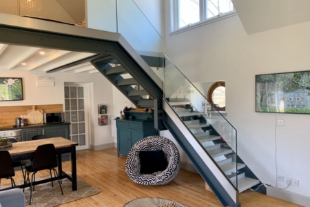 This isn’t your average countryside stay. The Bothy blends old soul and modern comfort, retaining original barn features like exposed stone walls, soaring beams, and a dramatic double-height living space, while weaving in playful design touches, artisan textiles, and a rich Farrow & Ball palette. The result is a space that feels both soothingly simple and refreshingly stylish.