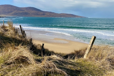 The Sheep Station is situated on the stunning west coast of the Isle of Harris in the Outer Hebrides and looks directly out onto the sand dunes of Traigh Mhor, the islands of Taransay and Gasker, the vast expanse of the Atlantic Ocean and the beautiful Harris hills.