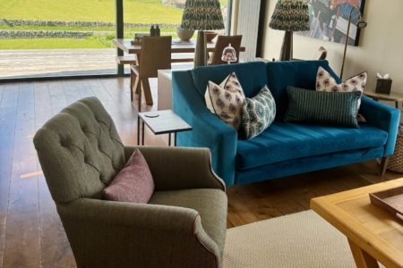 Nestled into the surrounding landscape, the house provides uninterrupted and often unexpected vistas from every window – be it golden eagles swooping over the mountains to the rear, oyster catchers all around, Canadian geese flying overhead or simply the sheep and playful lambs providing hours of entertainment.