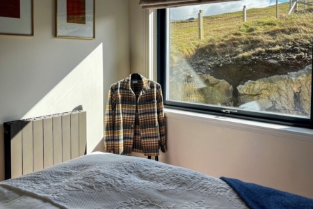 The Sheep Station is a single storey, deceptively spacious, larch clad building comprising, entrance hall, open plan fully equipped kitchen with Smeg appliances, dishwasher and microwave. A beautiful dining area which has full, uninterrupted views of the ocean and the Harris hills, lounge with wood burning stove, Sky TV, a selection of board games, books, including, local guides and maps, Bluetooth radio and binoculars for guests to enjoy the view. The property has exceptionally strong and fast internet access with Full Fibre Broadband available throughout.
