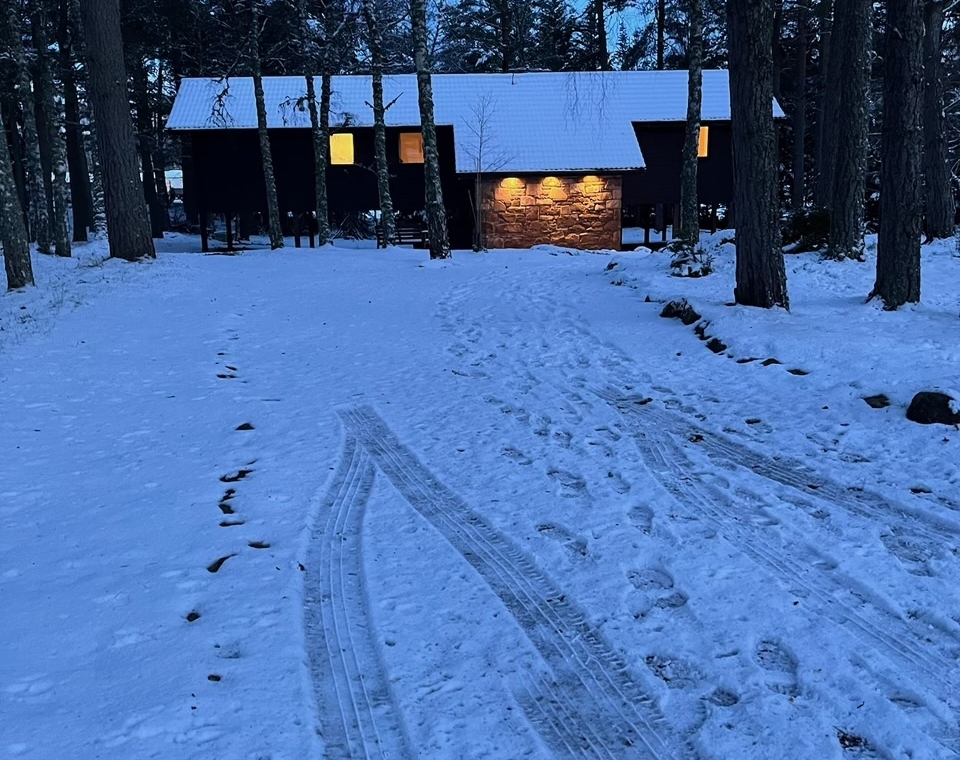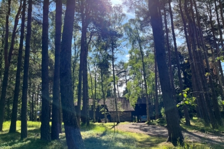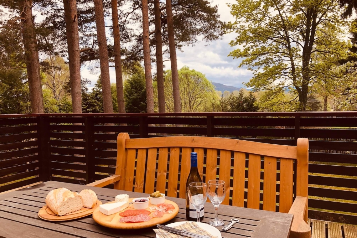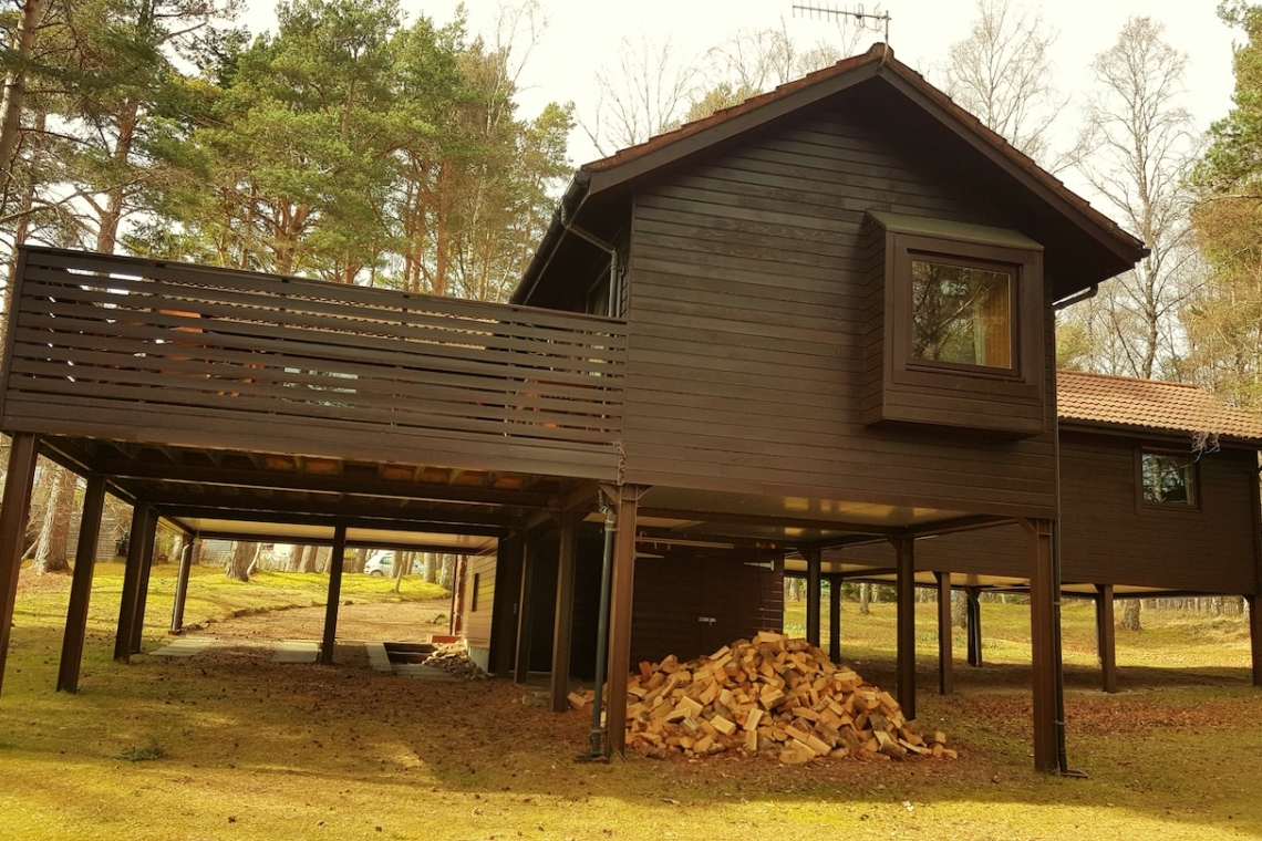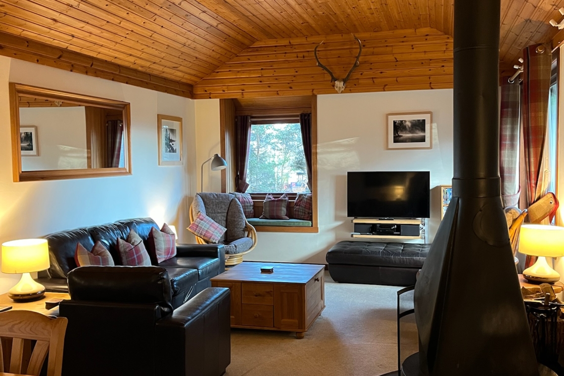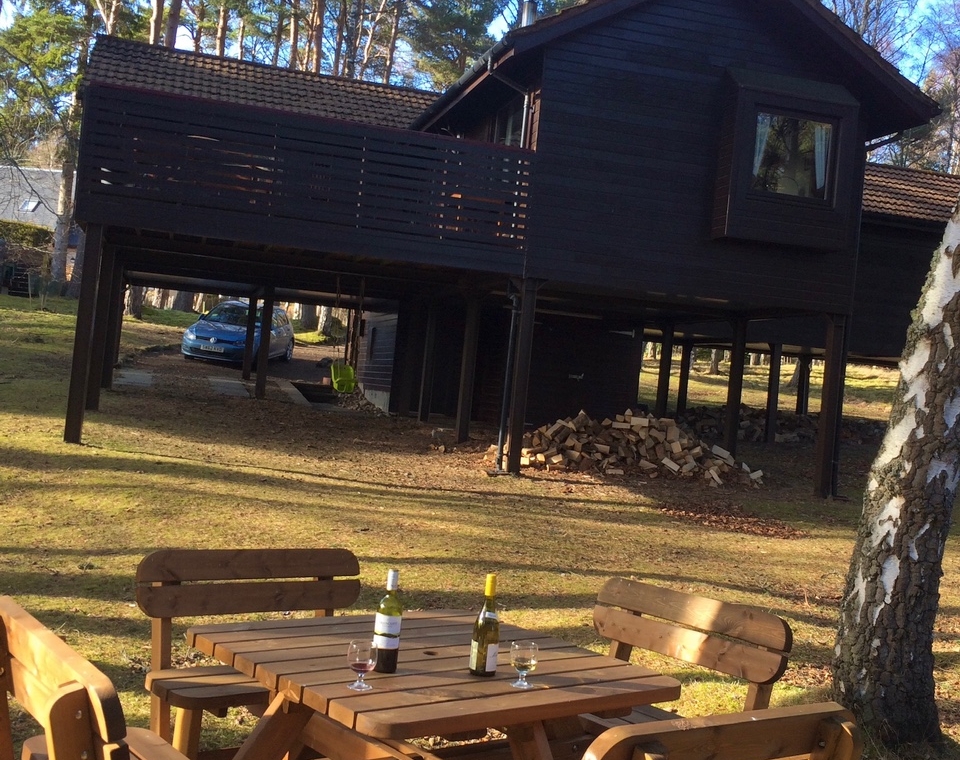 The Treehouse is in the quiet picturesque village of Boat of Garten, in the heart of the Cairngorms National Park. This unique lodge is set in a large woodland garden amongst tall Scots pine and birch trees, with views of the mountains from the fantastic high level deck. The lodge has a large open-plan lounge with log-burning fire, three bedrooms sleeping up to 7, and a fully equipped kitchen, There is a storage/utility room downstairs, ample off road parking, and secure bike storage.