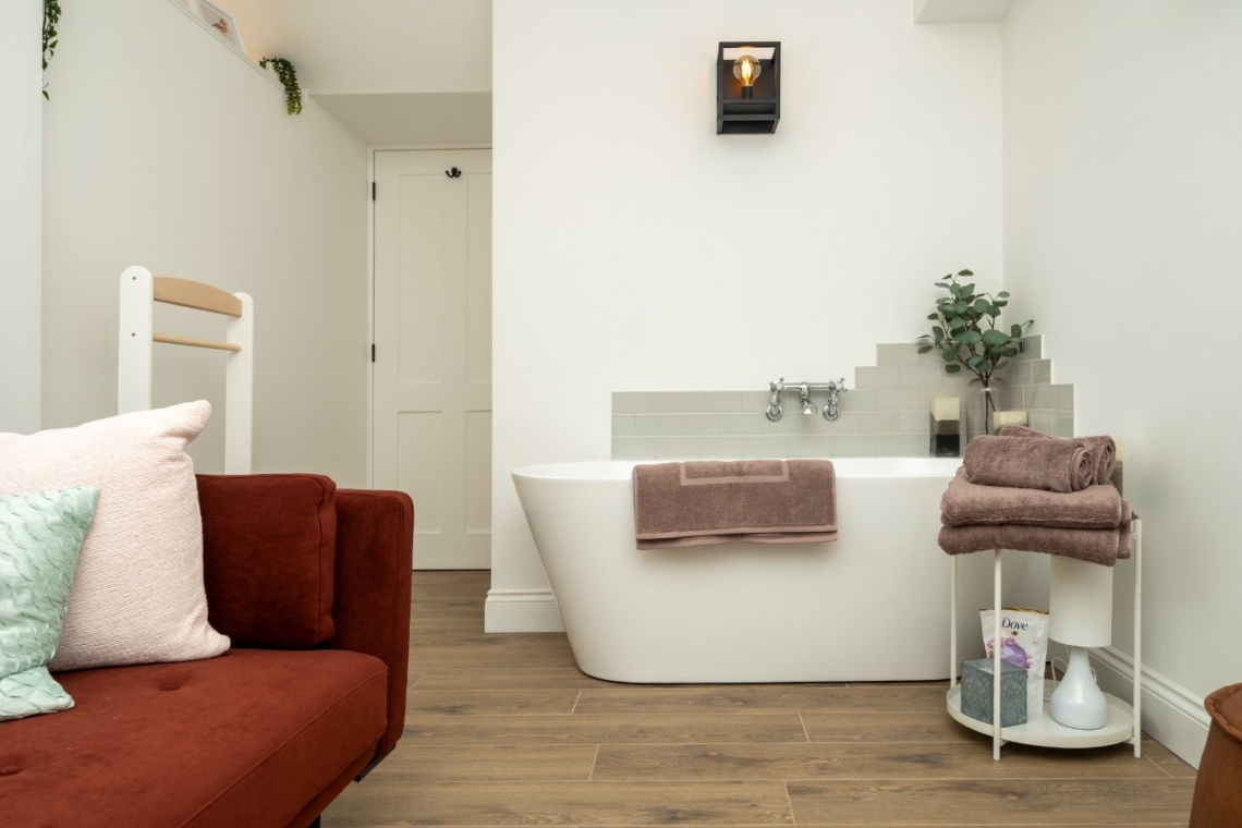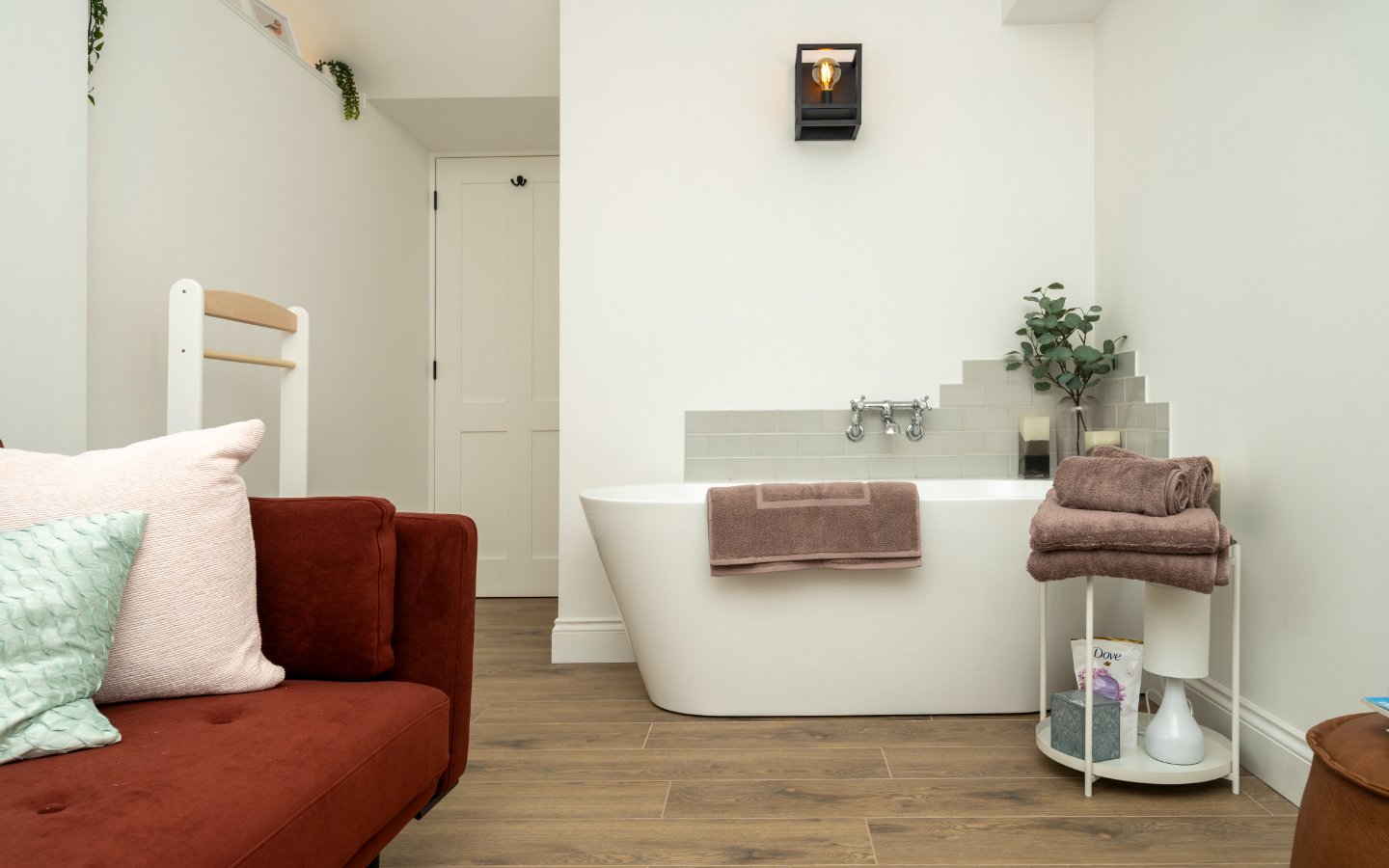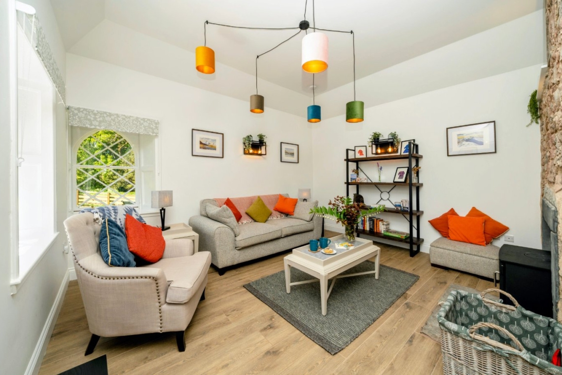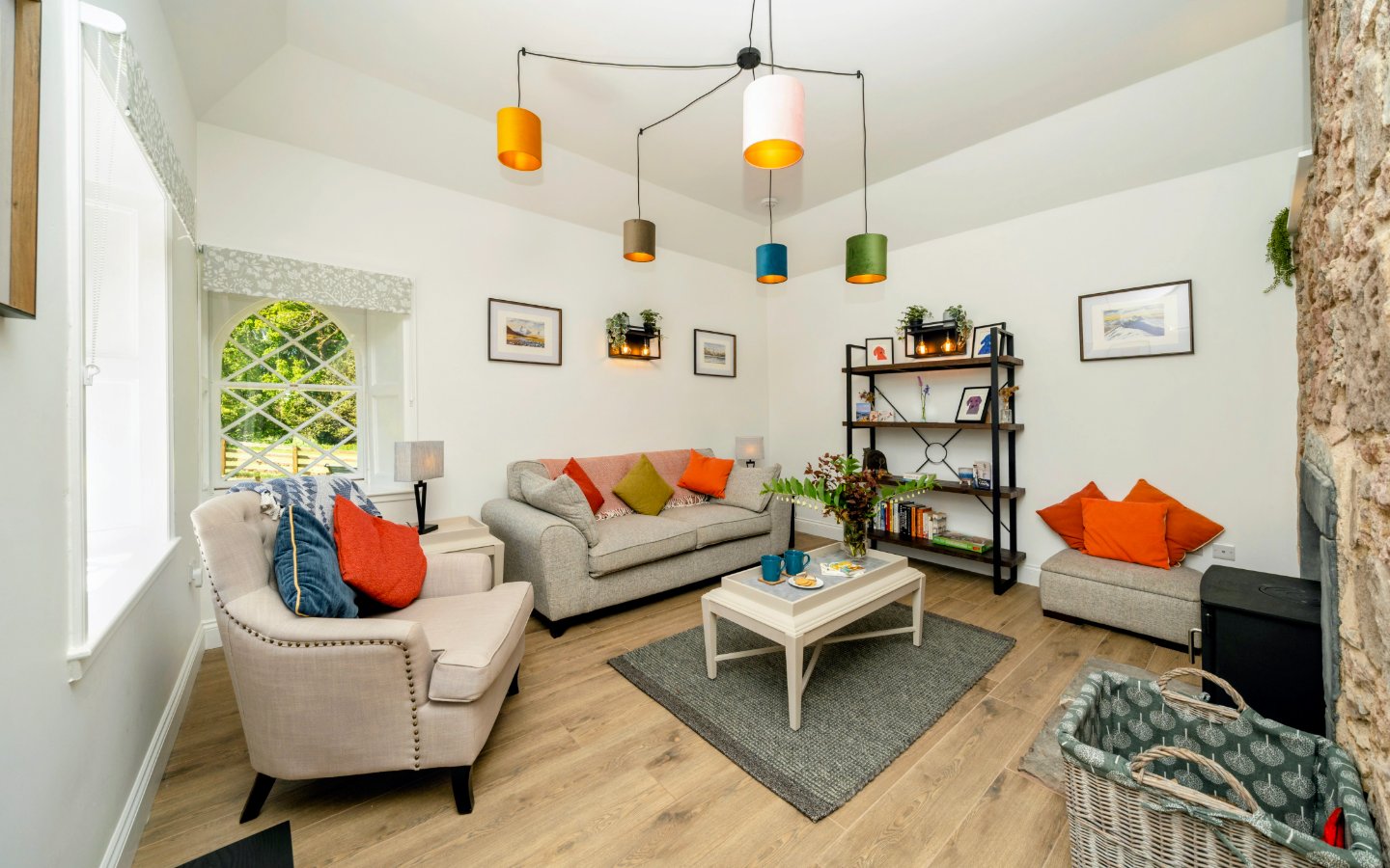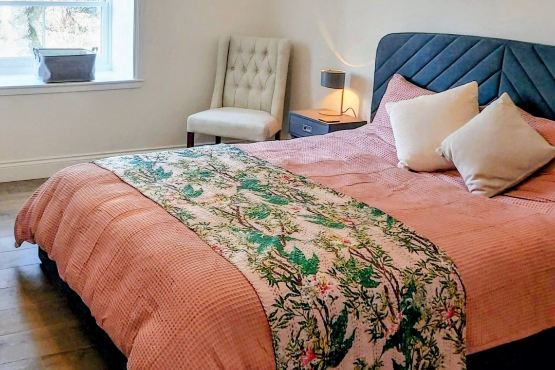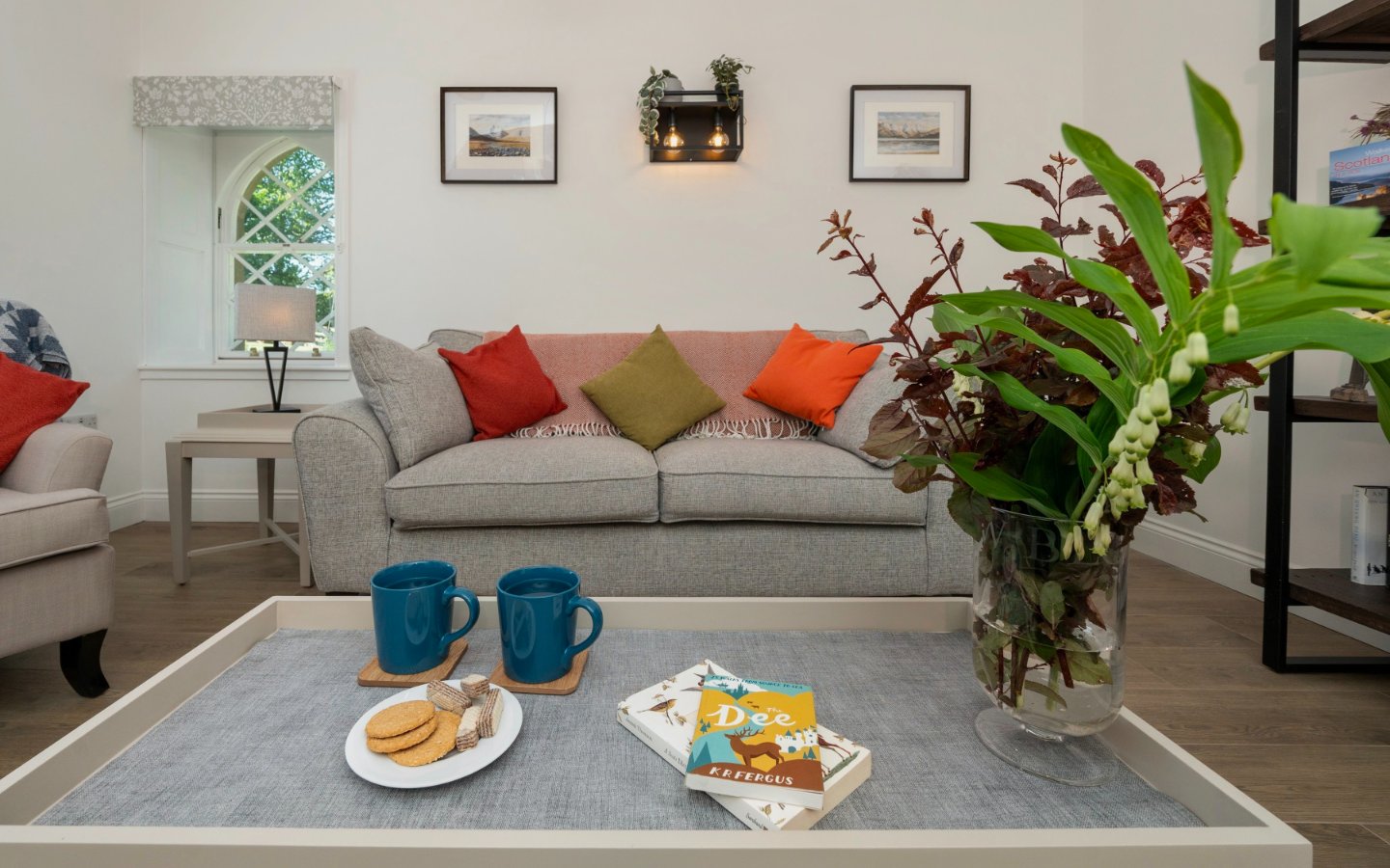 Ward End Cottage and its sister cottage, Farm Cottage, form part of the historic Newtonmill Estate, where former agricultural buildings have been carefully renovated while preserving their traditional charm. Inside, the cottage combines warm, contemporary interiors with original features, exposed stone work and a relaxed open-plan layout. A well-equipped kitchen and open-plan living space are centred around a wood-burning stove provide a peaceful place to unwind after a day exploring, not to mention the relaxation room – complete with sofa and feature bath for you to enjoy at your leisure. The king-size bedroom and modern bathroom complete the cottage. Windows look out across the surrounding garden (fully-fenced) and towards a small winding burn, bringing the landscape and wildlife into view.